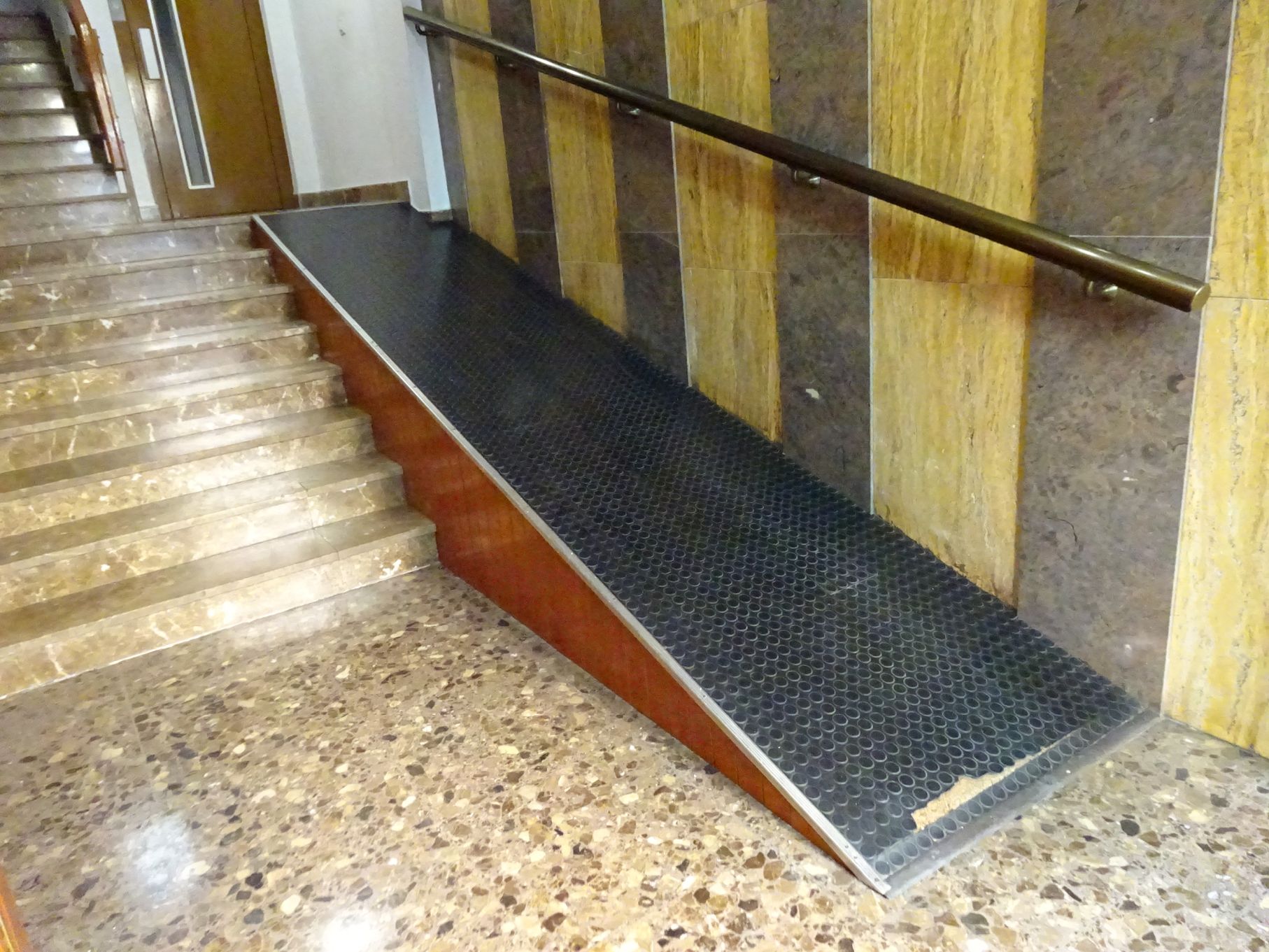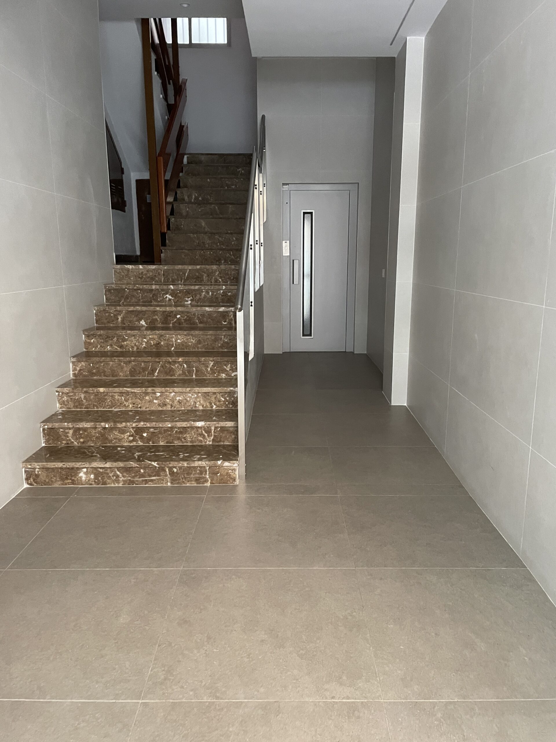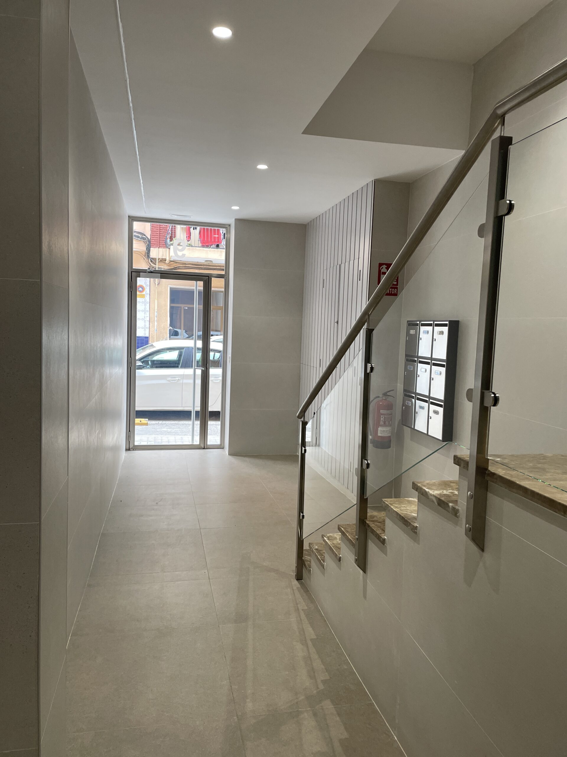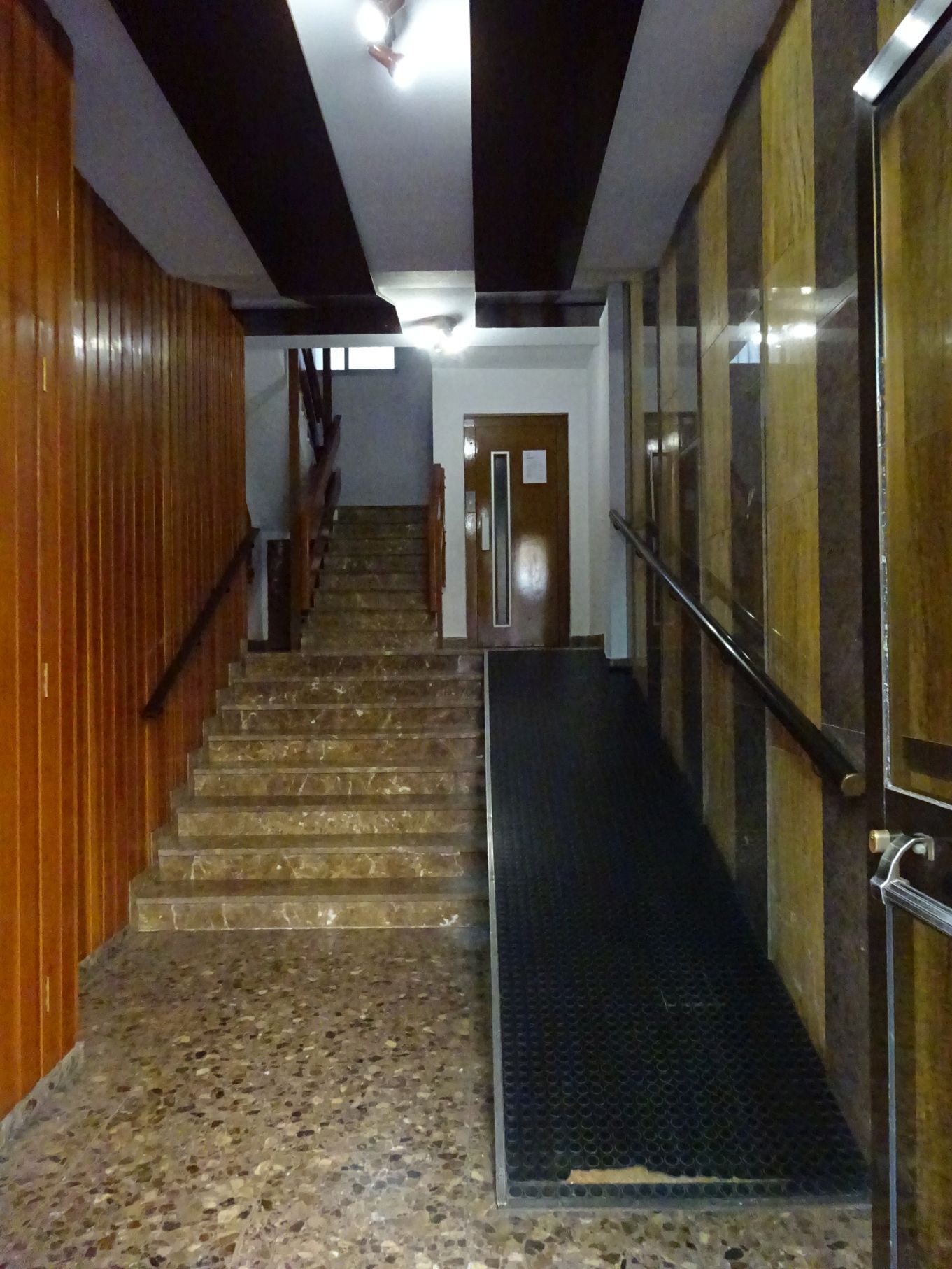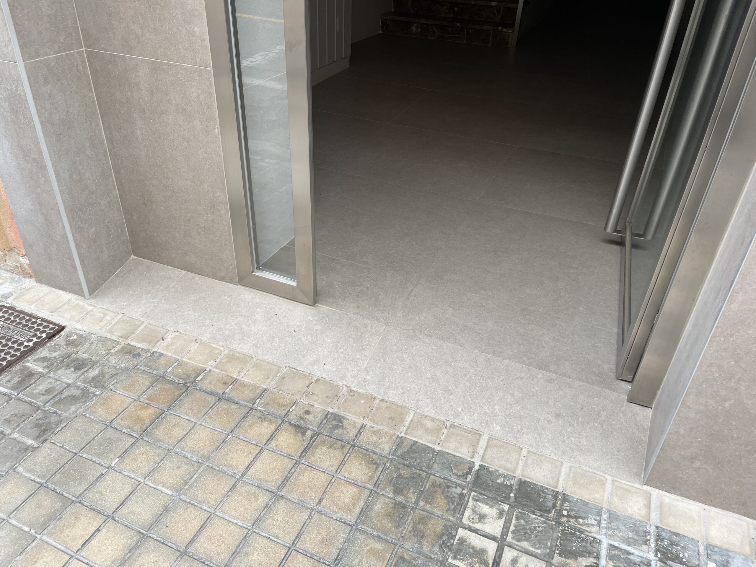 Reforma zaguán por accesibilidad. Bajada de ascensor a cota cero.